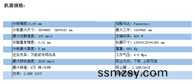 切(qie)割(ge)重(zhong)復精度: 0.01 mm