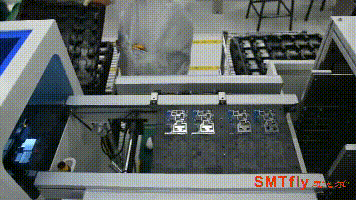 屏蔽(bi)蓋貼(tie)裝機有6箇(ge)貼(tie)裝頭,可貼裝6種(zhong)以(yi)內(nei)物料(liao) |